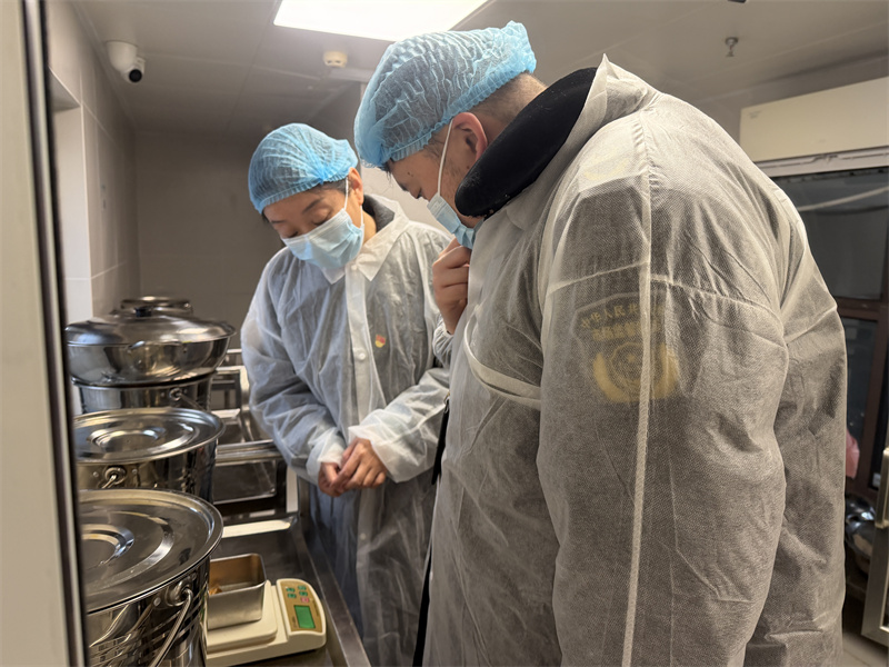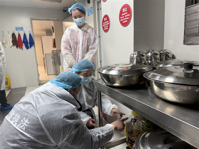 检查组采取现场核查 + 资料查阅 + 实地问询的方式,对幼儿园食品安全管理全链条进行细致排查。在食堂区域,重点检查食品经营许可证、从业人员健康证、食品储存条件、加工操作规范、餐饮具清洗消毒、食品留样、“三防”设施及“日管控、周排查、月调度”制度落实情况,对食堂环境卫生、生熟分区、仓库管理等关键环节逐一核验,确保食品安全全程可追溯、全流程合规。