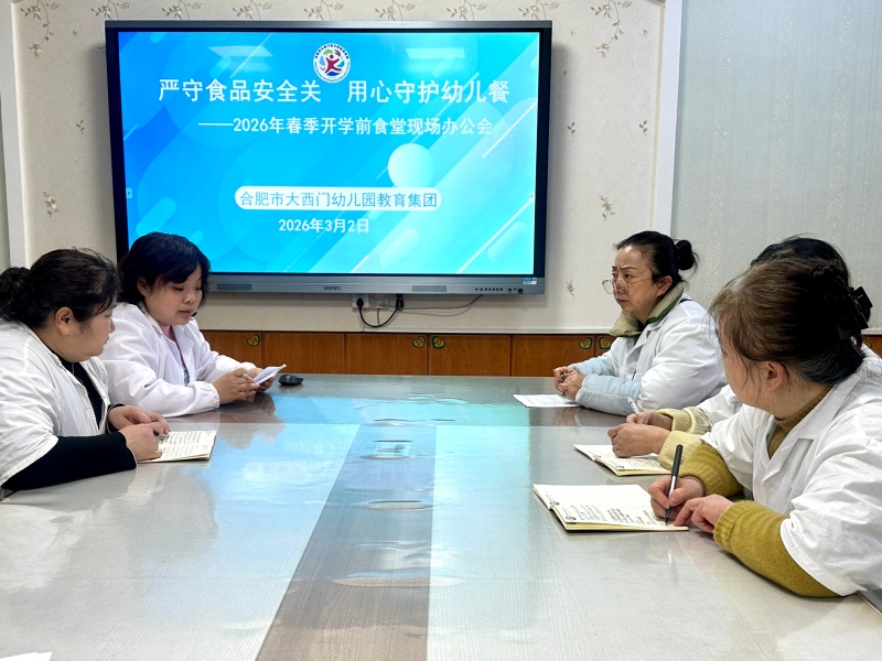 新学期伊始,为切实筑牢校园食品安全防线,提升膳食营养与品质,确保全体师幼“舌尖上的安全”,2026年3月2日,在合肥市大西门幼儿园教育集团党支部书记、总园长孙兰兰的统一部署下,集团组织召开新学期食堂现场办公会。各分园执行园长、食品安全总监、食品安全员和食堂从业人员同步开展会议,全力护航新学期饮食安全。