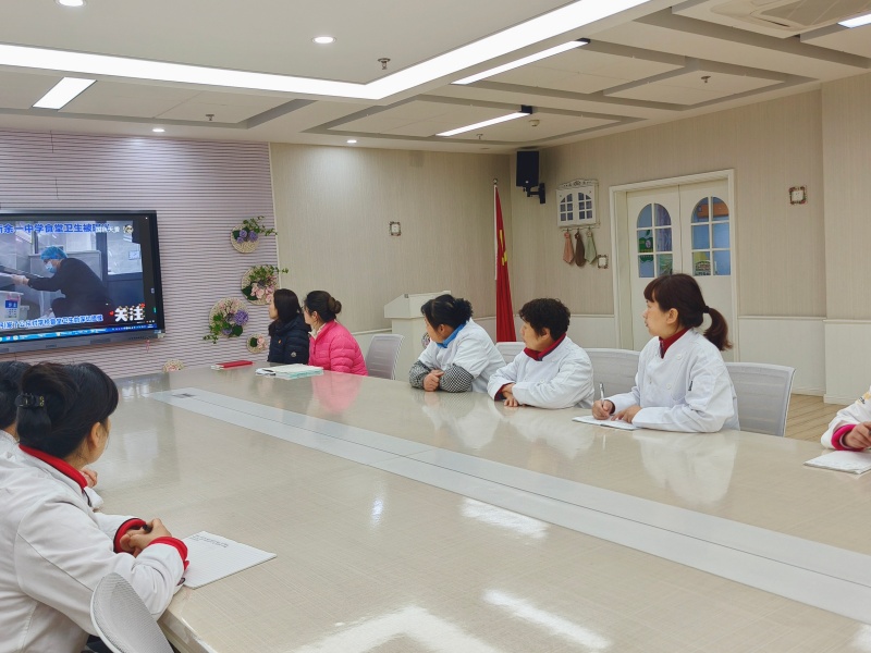 专项部署会后,观看食堂操作规范及消防安全警示视频。结合现场检查发现的问题展开讨论,通过“先看自己、再看他人”的对比反思,进一步强化了全体人员的规范意识、安全意识和敬畏之心,为筑牢食堂安全防线夯实思想根基。