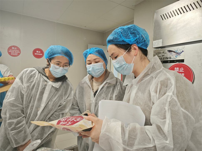 伙食委员会代表们规范穿戴防护用品后,和刘魏一起对照当日食材配送清单,对蔬菜、水果、肉类等逐一核验。大家仔细查看食材的新鲜度、生产日期、检疫合格证明等关键信息,实地了解幼儿园从采购、验收到储存的标准化流程。通过亲眼所见、亲手所触,家长对幼儿园“源头严控、过程严守”的食品安全管理机制有了更深的了解与信任。