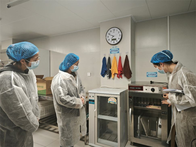随后,家长代表参观了食堂仓库、加工间、烹饪间等区域,实地查看食材存储、加工烹饪、餐具消毒、食品留样等全流程规范操作,整洁的环境、齐全的台账让家长印象深刻。刘魏耐心解答家长疑问,收获家长对幼儿园食堂管理的高度认可。