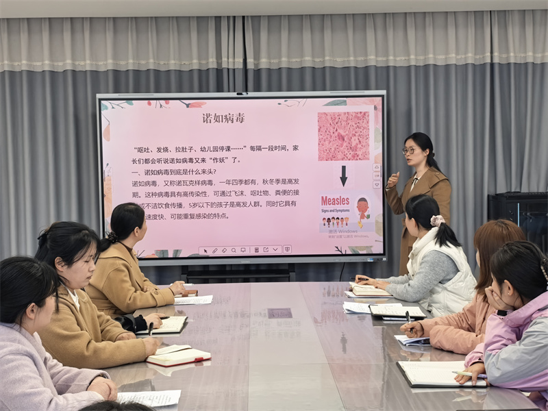 培训伊始,各园保健老师借助精心筹备的 PPT,深入浅出地讲解春季传染病防控知识,剖析流感、手足口病等常见传染病的传染源、传播途径、潜伏期及症状。结合幼儿园一日生活,明确保育员各环节防控职责,如晨午检需敏锐观察幼儿面色、精神,捕捉发热、皮疹等异常;强调用餐、午睡环节的环境清洁与幼儿卫生监管。同时,传授传染病应急处理原则与流程。保育员们全神贯注记录要点,学习氛围浓厚。