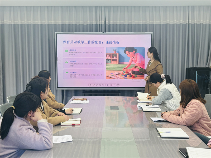 随后,班级老师和保育员代表分享了保教配合方面的经验和困惑并与大家探讨,例如:老师在幼儿突发情绪波动时与保育员配合节奏偶有偏差,保育员对教学环节节奏把握不够精准等。后续班级老师之间将加强沟通、熟悉彼此工作流程,提升配合默契,更好守护幼儿成长。