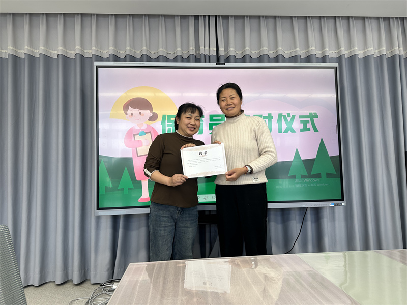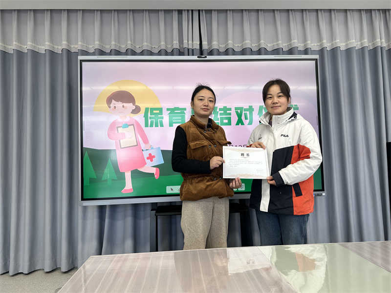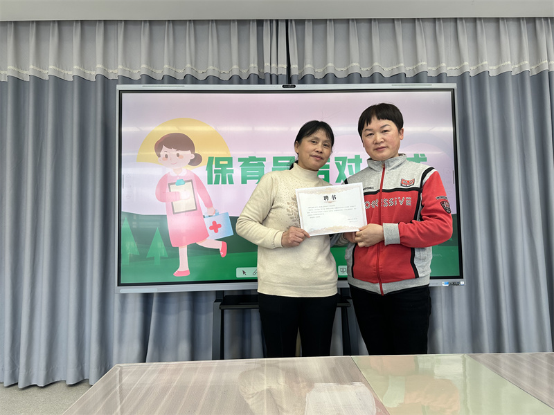 活动最后,全体保育员开展了师徒结对活动。范毓伟向大家宣读保育员师徒结对制度并颁发师徒结对聘书,她提出安全第一、提升能力、带好徒弟的带教原则,希望徒弟们能以热心、虚心、好学、主动的态度配合班级教师做好、做细保教工作。