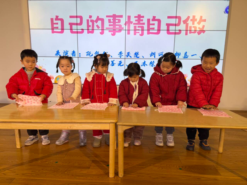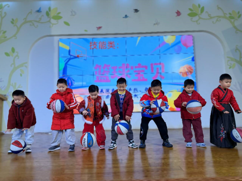 中班宝贝化身舞台新星,声情并茂朗诵《雪花》《家》、唱响《好孩子要诚实》等,浸润美好心灵;折纸、叠衣服、拍篮球,锤炼动手能力与体魄,在“桃花朵朵开”的游戏中,尽显成长与收获。