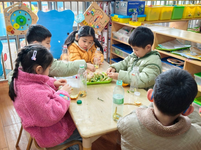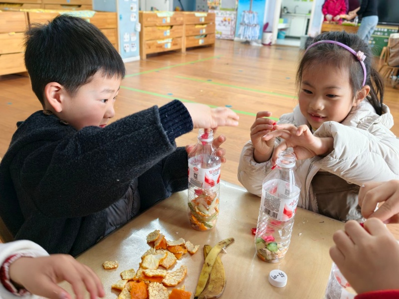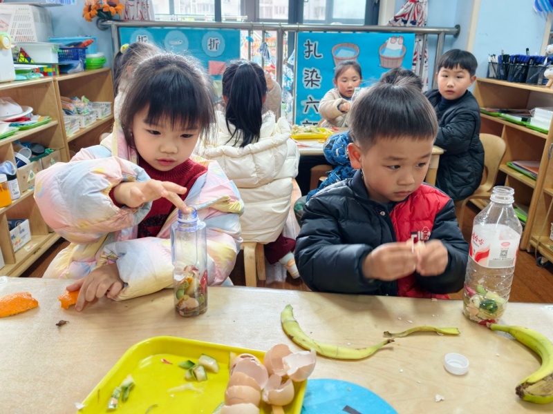 大一班以“植属于你”为主题,带领孩子们开展有机肥制作活动。在老师指导下,孩子们将收集的果皮、菜叶剪碎、装盒,按比例加入清水,亲手制作天然肥料。大家分工合作,在实践中学会废物利用,懂得珍惜资源。