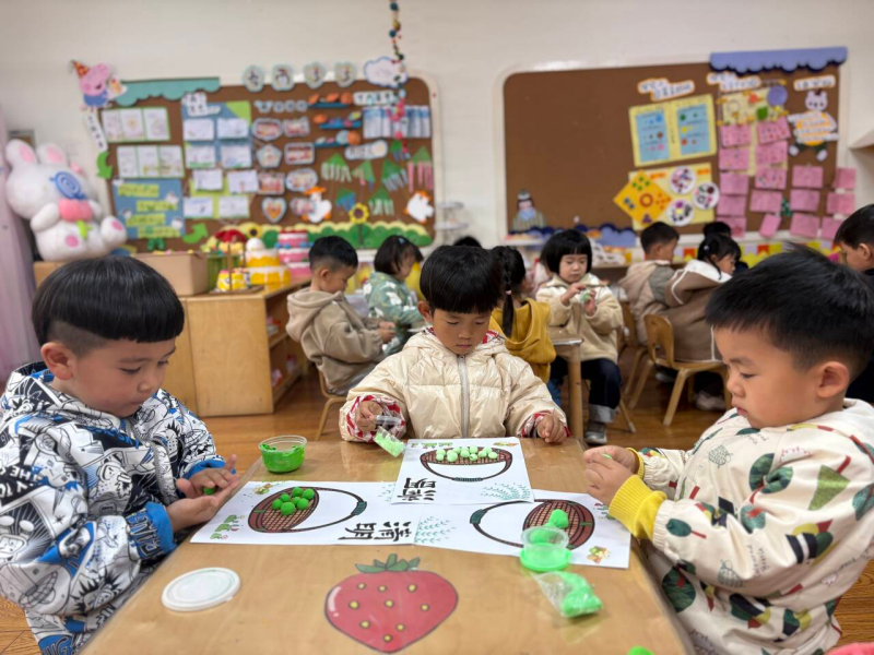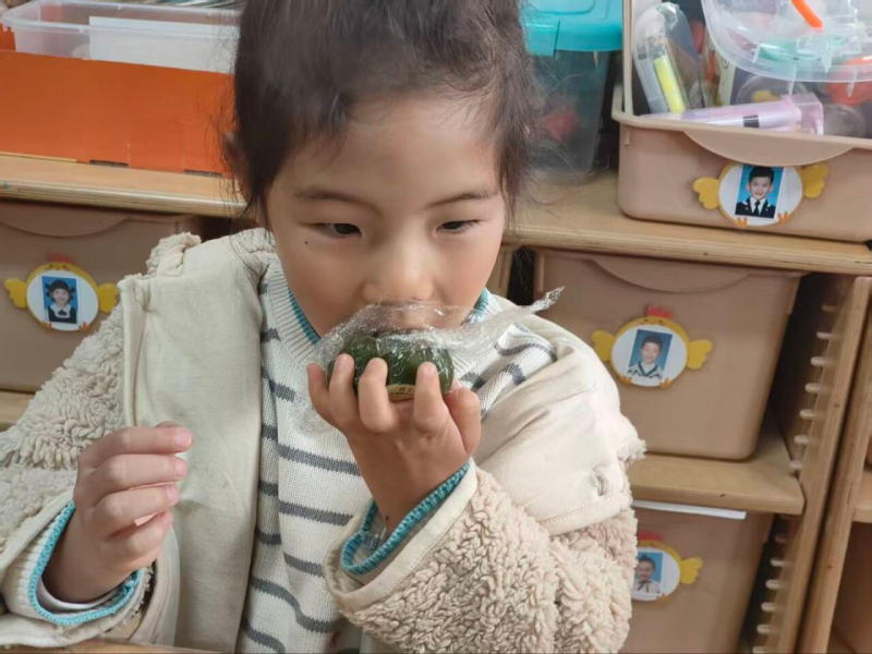 小班宝贝们化身小小美食家,在老师引导下用超轻粘土制作青团,小手揉一揉、团一团,一个个圆滚滚、软乎乎的粘土青团就完成了。接着,孩子们细细品尝软糯香甜的青团,艾草清香、软糯外皮与清甜内馅,大家尝到了春天的味道。在创意制作与美味品尝中领略传统节日的韵味,将春日美好与民俗文化藏进小小的青团里。