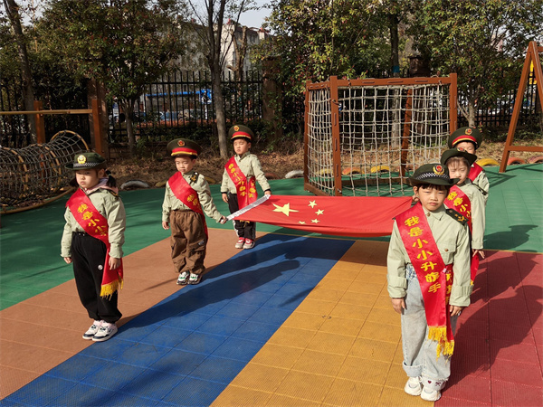 伴随着庄严的进行曲,中二班六位小旗手目光坚毅、步伐昂扬,护卫着五星红旗走向升旗台。在全园师幼的注目礼中,稚嫩的童声齐唱国歌,鲜艳的国旗与初升的朝阳交相辉映。