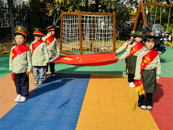 活动在庄严的升旗仪式中拉开序幕,中一班的小旗手精神抖擞,满怀敬意地升起了国旗。随后,庐阳公安的警察同志们入场,他们身着制服,与孩子们亲切打招呼,瞬间拉近了彼此的距离。