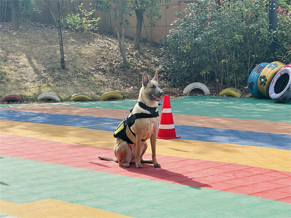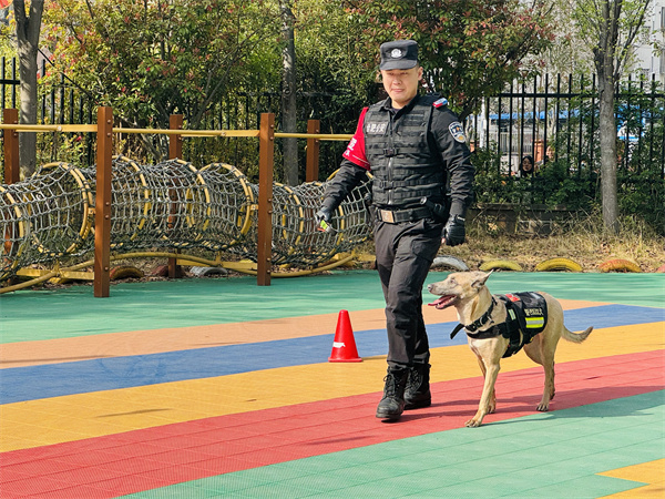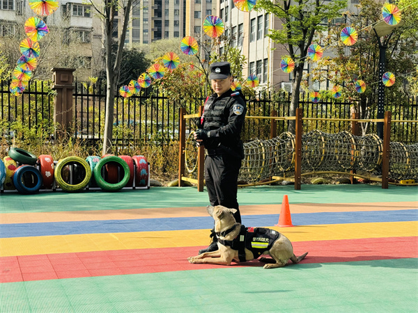 紧接着,一位“神秘嘉宾”登场,它身穿“警服”,鼻子超灵,还能抓坏人,原来就是警犬特工队!“哇,那只大狗狗好帅!”随着训导员的手势和指令,警犬准确地做出了坐、卧、立、翻滚等精准动作,警犬的聪明和敏捷赢得了孩子们的阵阵掌声。