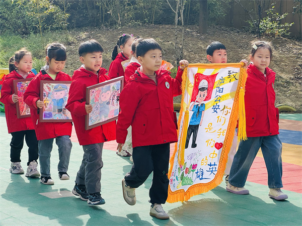 除了警察叔叔精彩的表演,中一班、中二班的孩子们还带来了精彩的快板表演《马路上》,用欢快的节奏和生动的表演欢迎庐阳公安的警察叔叔阿姨们的到来。孩子们还亲手制作了小礼物,送给护卫他们安全的警察叔叔、阿姨,表达了对他们的感激之情。