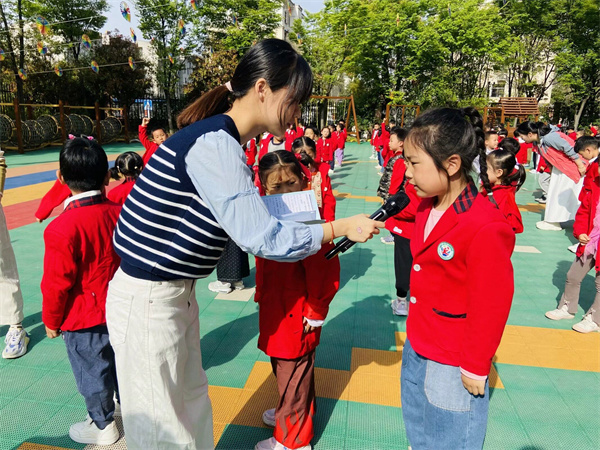 仪式上,缪老师向孩子们介绍了世界卫生日的意义,并亲切提问:“小朋友们,你们知道有哪些保持卫生、爱护环境的好办法呀?”孩子们踊跃回答,稚嫩的声音此起彼伏:“吃饭前要洗手,饭后要漱口!”“要勤剪指甲、勤换衣服!”“不能践踏花草树木,不能乱扔垃圾!”现场气氛十分热烈。缪老师对孩子们的回答连连称赞,并进一步分享了保持健康的小知识:“大家说得都很棒!我们还要记得多运动,这样才能拥有强壮的身体。从现在起,让我们一起从身边小事做起,养成良好的卫生习惯。”