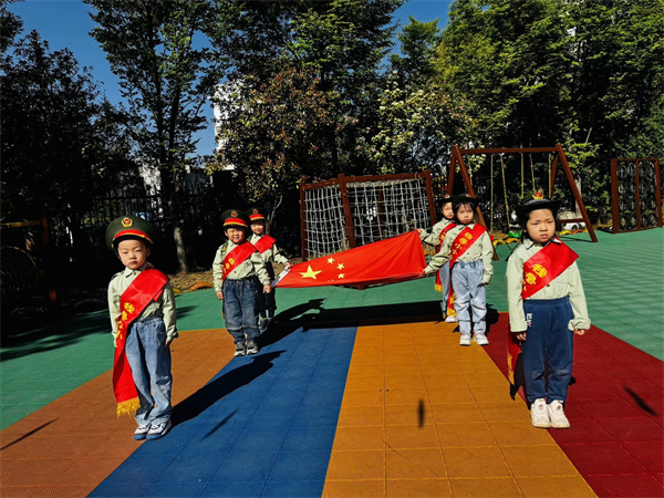 在升旗仪式上,大一班的小旗手们精神抖擞,迈着整齐的步伐护送国旗入场。伴随着雄壮的国歌声,全体师幼肃立行注目礼,鲜艳的五星红旗冉冉升起。