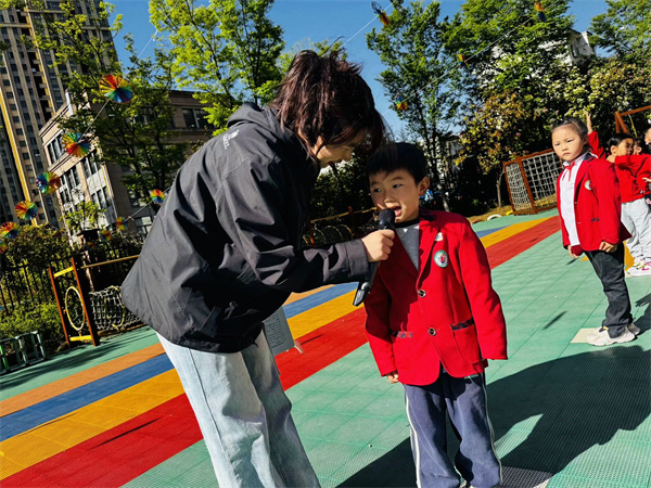 仪式结束后,主持贺老师向孩子们介绍什么是防拐防骗,通过互动问答的方式,向孩子们普及了防拐骗知识,强调“不跟陌生人走”“不吃陌生人的食物”“牢记家长电话和住址”等安全准则,帮助孩子树立自我保护意识。