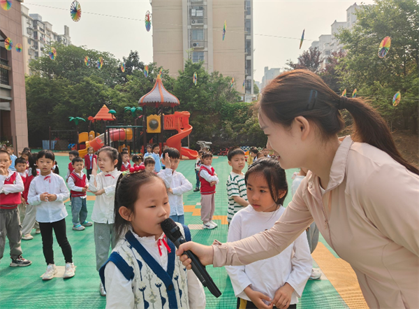 看,中二班的孩子们为大家表演《同一个家》,告诉我们幼儿园是我们共同的“魔法城堡”,每一块彩色地板、每一本图画书、每一棵小树苗,都像我们的好朋友一样,需要我们轻轻爱护。