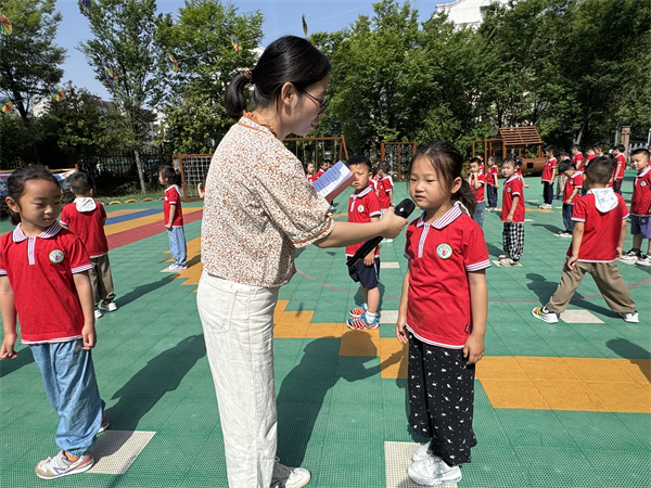 主持吴老师通过互动提问“如果你看到同学摔倒,你会怎么做呢?”“如果有人抢你的玩具,你会大声哭闹吗?”引导孩子们知道欺负别人、推人、骂人都是不对的,我们要像小太阳一样,用善意照亮每个人!保护自己和他人才是超级英雄!紧接着,大二班筱曲小朋友带来一首儿歌,告诉每个小朋友都是独一无二的小星星。让我们手拉手,不做“小刺猬”,也不当“小石头”,用微笑和友爱让幼儿园充满阳光!