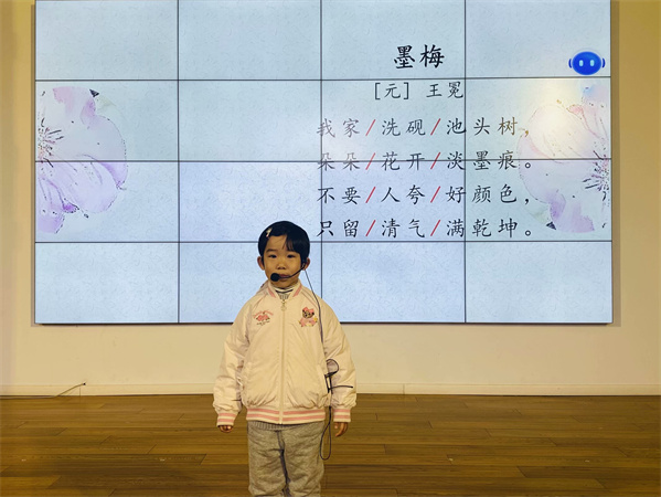 古诗词是中华文化的瑰宝,是幼儿最喜爱的文学作品之一。中班幼儿用丰富的表情动作、稚嫩的声音朗诵了《春晓》《咏鹅》《悯农》《静夜思》等耳熟能详的诗词,既表现了幼儿标准的普通话水平,又展示出中华经典诗词的魅力。台上的孩子们表现地自然大方,声音张弛有度,台下的孩子们不时送来热烈的掌声。
