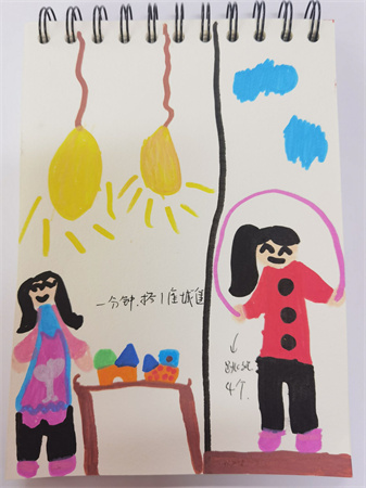 为切身感知一分钟时间的长短,孩子们畅想绘画出一分钟想做、能做的事情,如一分钟垒高、一分钟夹豆子、一分钟跳绳、一分钟复原三明治魔方等挑战活动,在活动中亲身体验一分钟时间的长短,我们一起来看看孩子们的一分钟挑战记录吧!