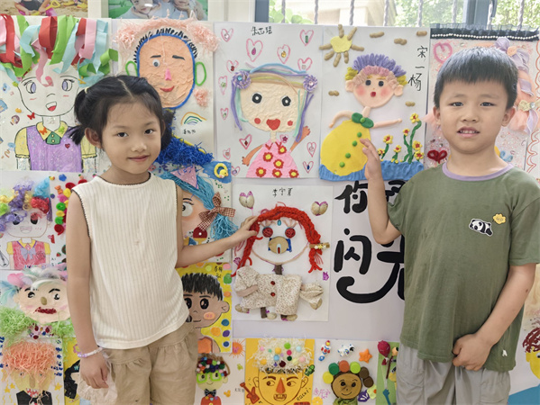 仲夏伊始,蝉鸣和渐渐倒数的钟声奏响童年的赞歌。大班的哥哥姐姐们开始准备着属于自己的毕业画展。作为毕业的小小主人翁,他们利用羽毛、粘土、布料、贝壳等材料,创作了独一无二的自画像,希望老师和弟弟妹妹们在以后的日子中看到画像也能想到自己。同时,小朋友们还画出了班级老师、保安师傅、大厨……表达出了自己的感恩、感谢之情。