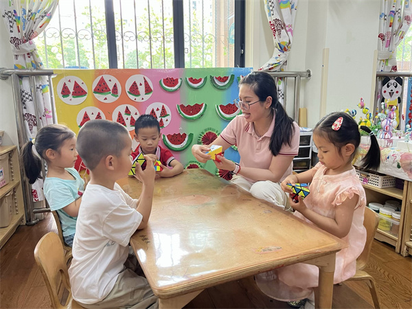 小小的魔方,巧妙的转动,转出了孩子们心中美好的向往,传递着乐观向上的激情。通过本次魔方比赛的开展,借助适合幼儿年龄特点的火山魔方,帮助幼儿进行思维训练,学会如何思考、如何学习,为小学学习奠定基础。相信孩子们在此次活动中都有不同的收获,期待我们下次的思维之旅吧!(撰稿/初审:李梦雨 摄影:小班教师 复审:庞志荣 终审:余学琴)