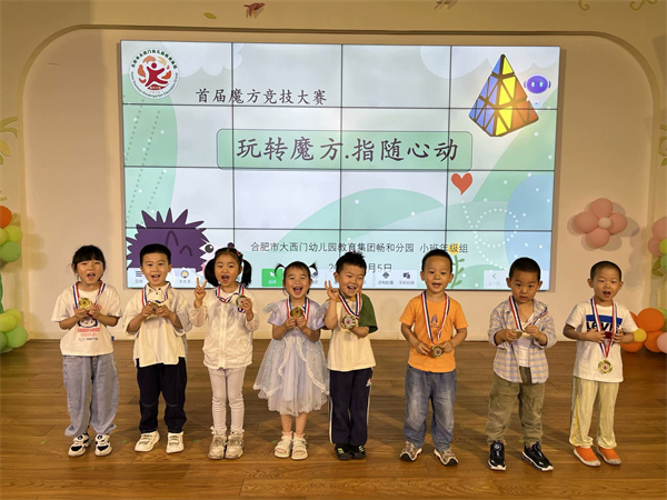 小小魔方,蕴藏着大大的智慧。自我园安徽省教育装备课题《利用信息技术提升大班幼儿复原魔方能力的实践研究》开展以来,幼儿园里学习魔方的氛围愈发浓厚。魔方的还原过程是一个观测、动作、思维集于一体的过程,对于思维能力有极高的要求。培养幼儿的逻辑思维能力是幼小衔接的重要内容,为了充分的做好幼小衔接工作,在学前教育宣传月期间,2024年6月11日,合肥市大西门幼儿园教育集团畅和分园小班年级组开展了“玩转魔方 指随心动”火山魔方挑战赛活动。