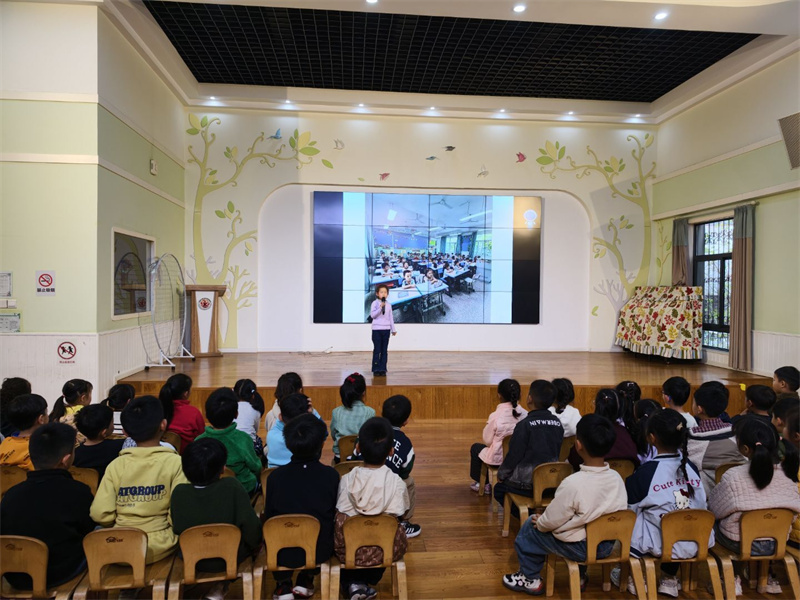 小学生姐姐自信亮相,轻松幽默回应小朋友们最关心的“作业多不多”“课堂严不严”等疑问,用趣味故事化解陌生感,让幼儿园的小朋友们对小学生活有了初步的温暖印象。