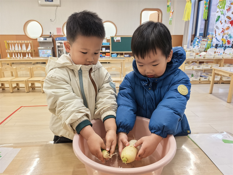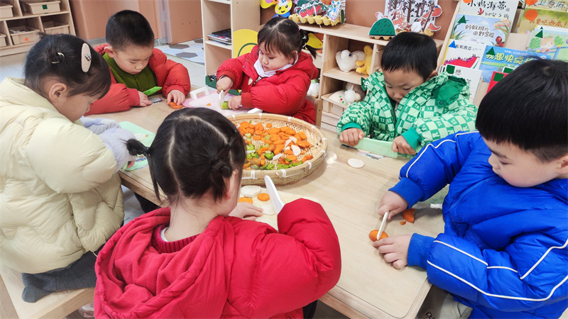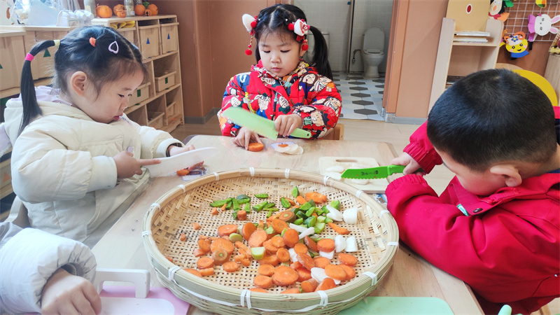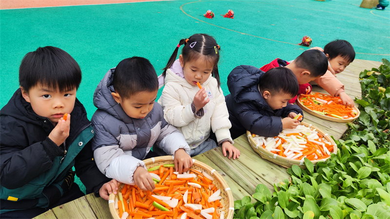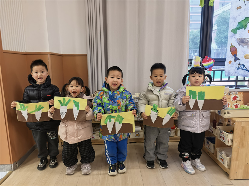 陈鹤琴先生说过:“大自然是我们的知识宝库,大社会是我们的生活宝库,是我们的活教材。”2025年12月24日,合肥市大西门幼儿园教育集团固镇路分园小班开展“萌趣萝卜工坊 解锁快乐成长”主题活动。孩子们在触摸、观察与体验中探索萝卜奥秘,收获劳动与创造的双重快乐。
