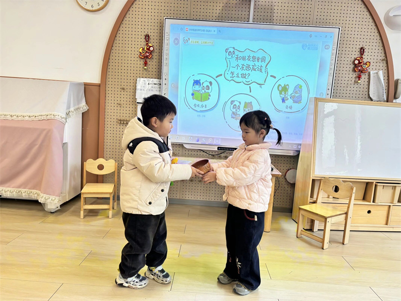 小三班开展了“玩具分享日”活动。孩子们主动带来自己心爱的玩具,向同伴介绍玩法,相互交换体验。在分享过程中,他们学会了沟通表达,明白分享能让快乐加倍,进一步增强了集体归属感。
