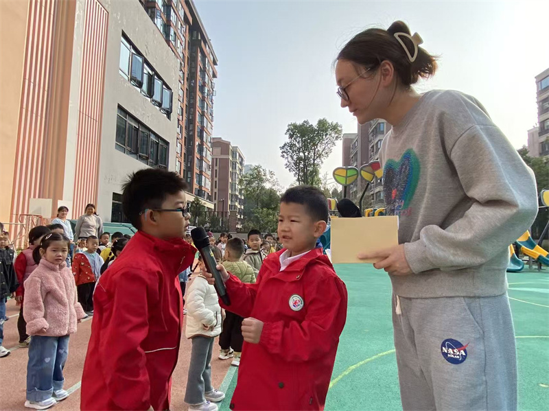 活动中,主持人老师提出问题:“小朋友们,你们知道重阳节是谁的节日吗?我们身边的爷爷奶奶,每天都会为我们做哪些事呀?” 孩子们立刻踊跃举手,有的说 “爷爷每天送我上幼儿园”,有的分享 “奶奶会给我煮甜甜的粥”,稚嫩的回答充满对长辈的亲近与依赖。紧接着孩子们又积极踊跃地回答想要怎样为长辈们庆祝节日,明白 “感恩” 可以从身边小事做起。最后,全体师幼共同对着镜头大声祝福:“爷爷奶奶、外公外婆,重阳节快乐!” 清脆的声音回荡在操场,成为节日里最真挚的礼物。