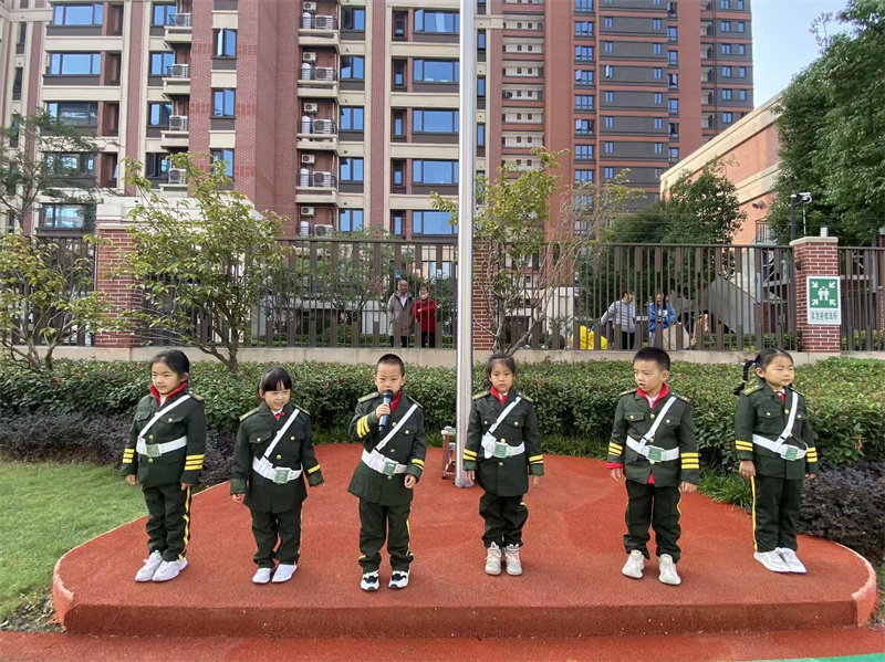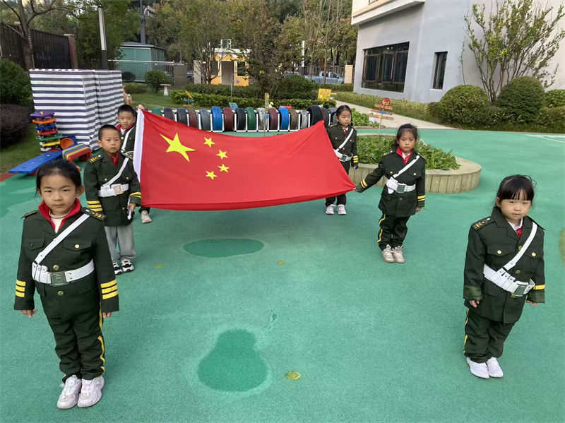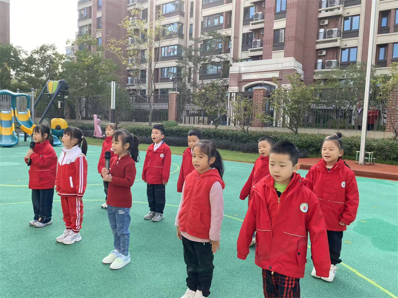 接下来,庄严的升旗仪式在激昂的国歌声中拉开帷幕,小小升旗手们精神抖擞,迈着整齐的步伐护送国旗入场。鲜艳的五星红旗在晨风中冉冉升起,全体师幼行注目礼,爱国情怀在孩子们心中悄然生根。最后,大班的小朋友们带来了精彩的儿歌表演《我是大班哥哥姐姐》为升旗仪式落下帷幕。