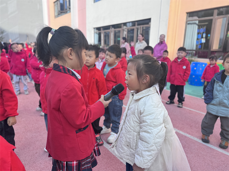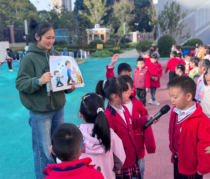 2025年11月3日,合肥市大西门幼儿园教育集团固镇路分园以 “自救自护” 为主题开展升旗仪式,小一班张老师和大班的姚予汐小朋友带领全体幼儿学习安全知识,在互动中提升孩子们的自我保护能力。