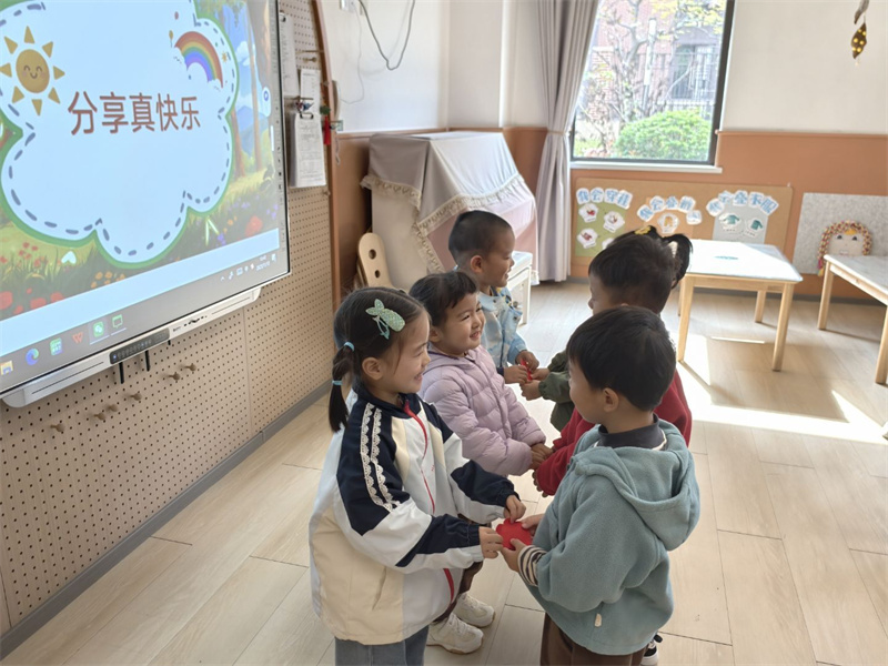 聚焦社交场景,幼儿带来玩具、绘本与同伴分享,在互动中体会“分享的快乐”;同时学会用语言致谢、用小礼物传递心意,向帮助自己的同伴表达感恩,在真诚互动中培养友善待人、懂得感恩的良好品质。