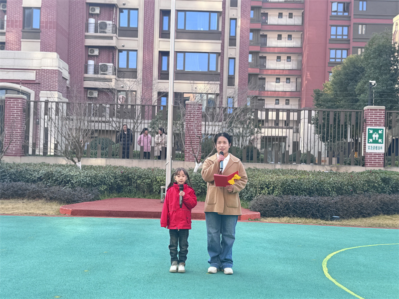 为进一步加强幼儿交通安全教育,切实增强幼儿的交通安全意识和自我保护能力,2025年12月8日,合肥市大西门幼儿园教育集团固镇路分园开展以“交通安全 ,你我‘童’行”为主题的升旗仪式。本次升旗仪式由小三班项老师与大班付依宁小朋友共同主持,全体师幼齐聚操场。