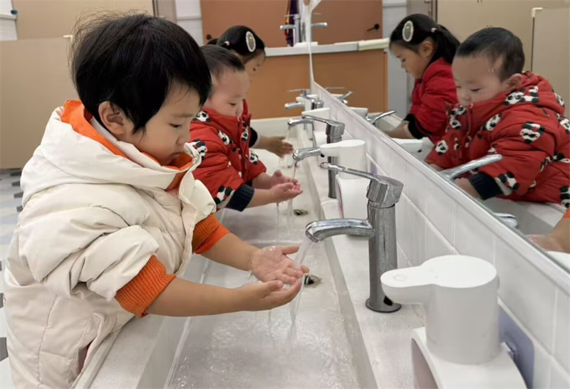 托班聚焦餐前卫生,老师通过儿歌和游戏,引导幼儿牢记“七步洗手法”,把病菌“赶跑”,争做健康小卫士;小一班开展餐前准备活动,老师趣味讲解蔬菜、肉类的营养知识,带领幼儿认识骨盘、餐盘的用途,学会自主分发餐具;小二班着重培养就餐礼仪,从安静入座、双手扶碗,到细嚼慢咽、不挑食不浪费,幼儿在模仿与实践中懂礼貌、守规矩;小三班发起光盘行动,以“光盘小达人”打卡激励幼儿珍惜粮食,体会劳动的不易;小四班关注餐后环节,幼儿在老师指导下,认真擦嘴、主动漱口,做好口腔清洁,养成卫生好习惯。