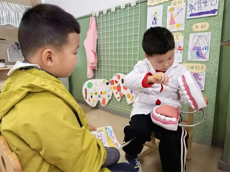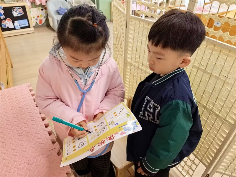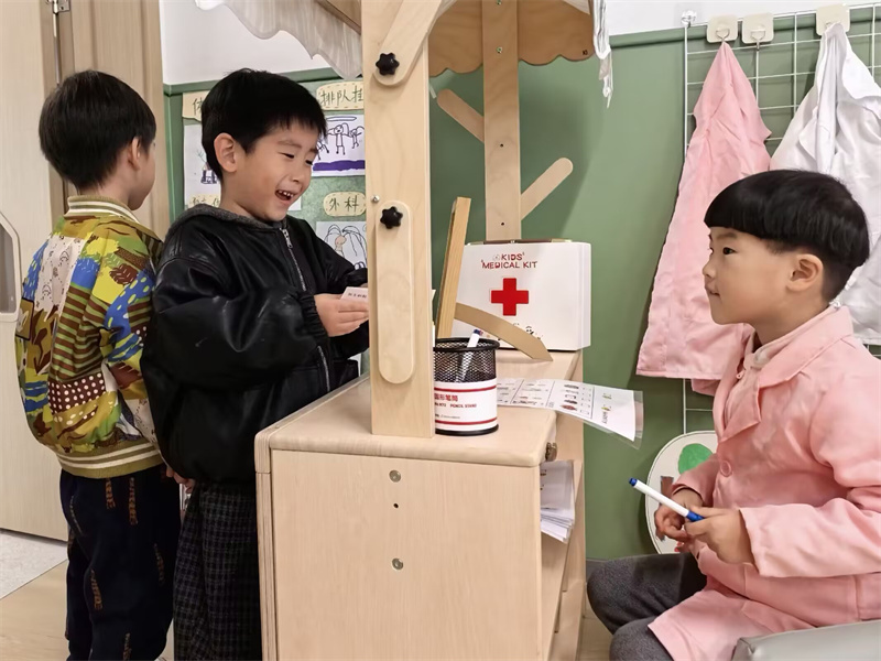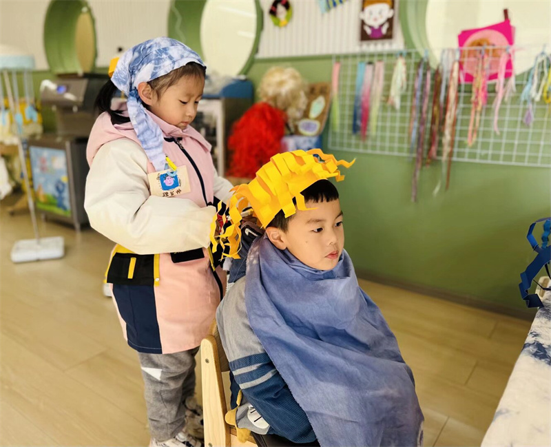 角色区的游戏同样热闹非凡,孩子们充分发挥想象力和创造力,结合自己的生活经验,进行理发店、小医院等角色扮演游戏。在游戏中,孩子们的社会交往能力、合作能力和动手能力都得到了进一步提升。