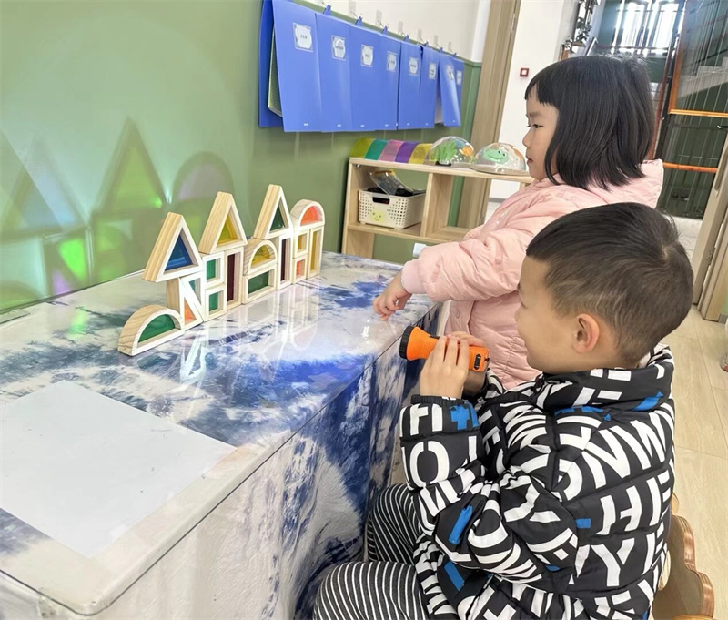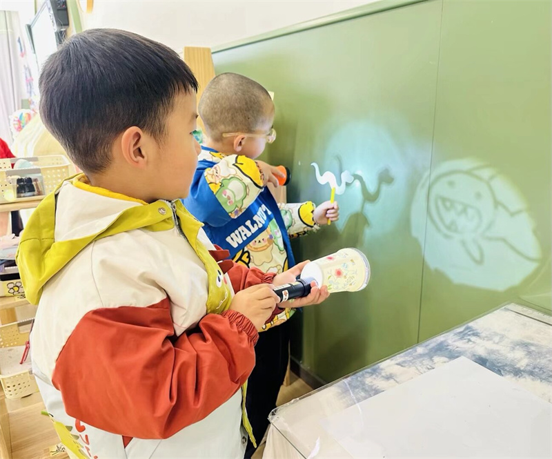 科学区的孩子们化身小小科学家,在动手操作与思考讨论中,观察奇妙的实验现象,探索科学的奥秘。科学思维与实践能力得到有效锻炼。