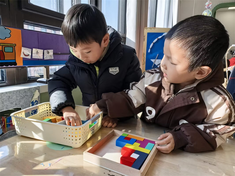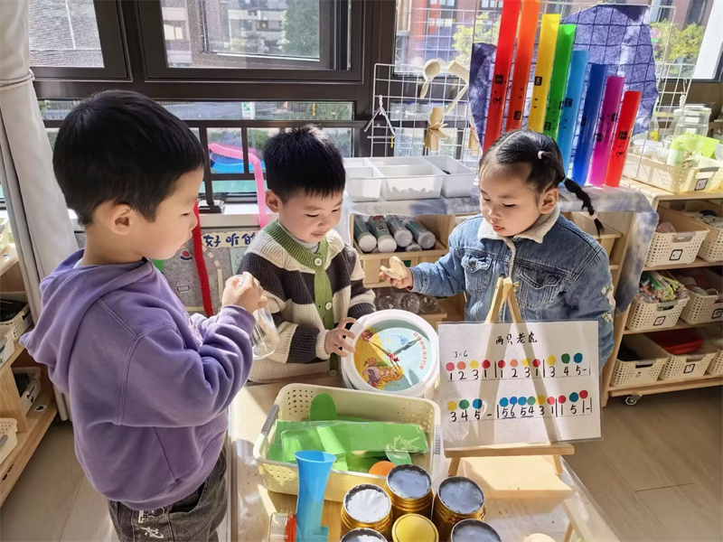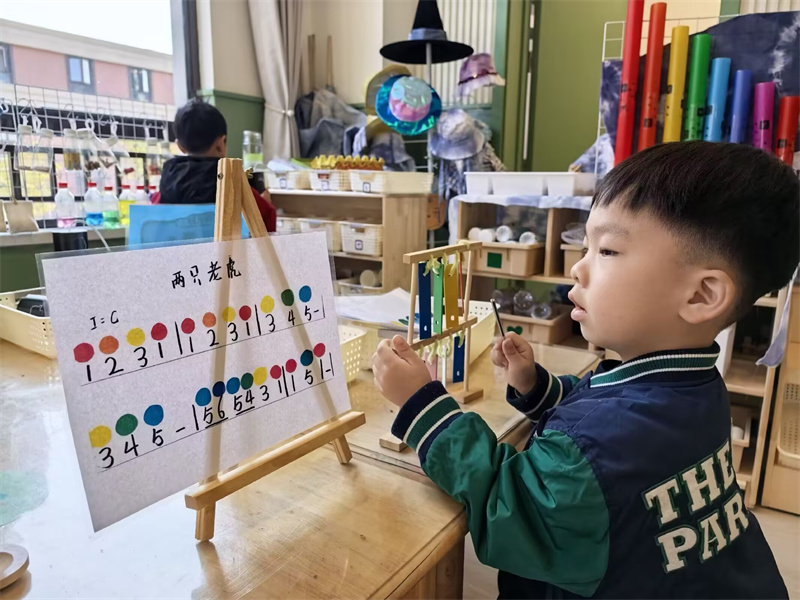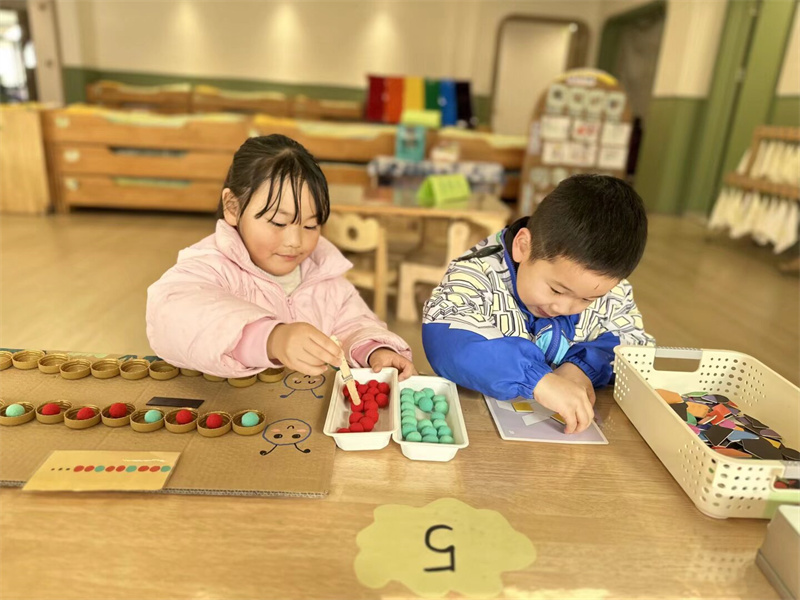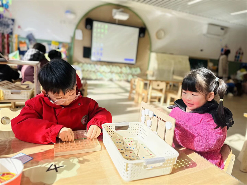 数学区充满挑战与乐趣,孩子们在游戏中运用所学的数学知识解决问题,在轻松愉快的氛围里,提升了数学逻辑思维和解决实际问题的能力。