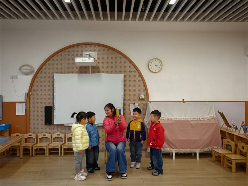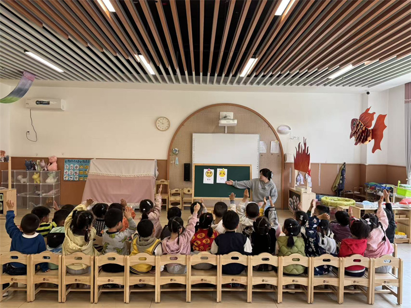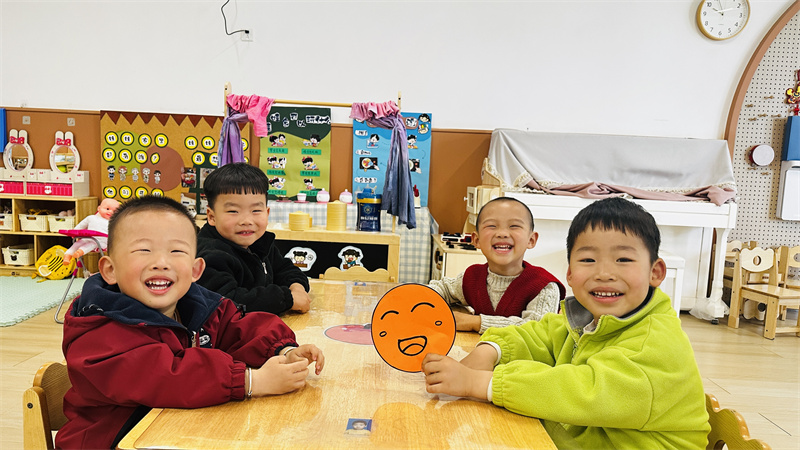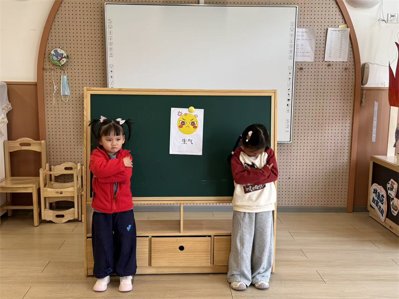 “情绪拍拍操”成为孩子们的情绪调节小妙招。当孩子出现急躁、难过等负面情绪时,老师带领大家一起做拍拍操:“拍拍手,深呼吸,不开心的事都跑掉;拍拍肩,笑一笑,快乐心情回到家”。跟着节奏拍手、深呼吸、做鬼脸,在简单的肢体动作与口令中,孩子们快速平复情绪,释放压力,学会用积极方式调节负面情绪,做自己情绪的小主人。