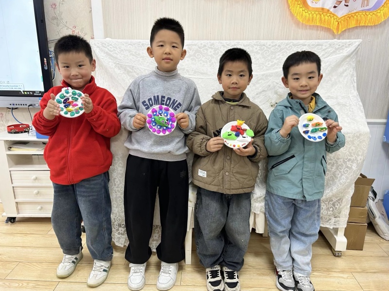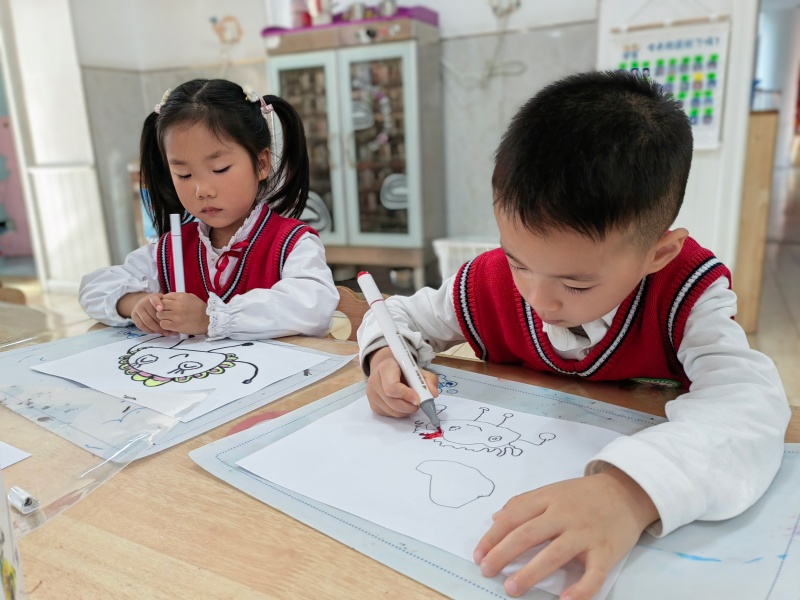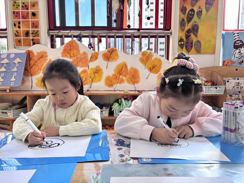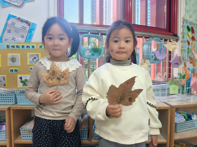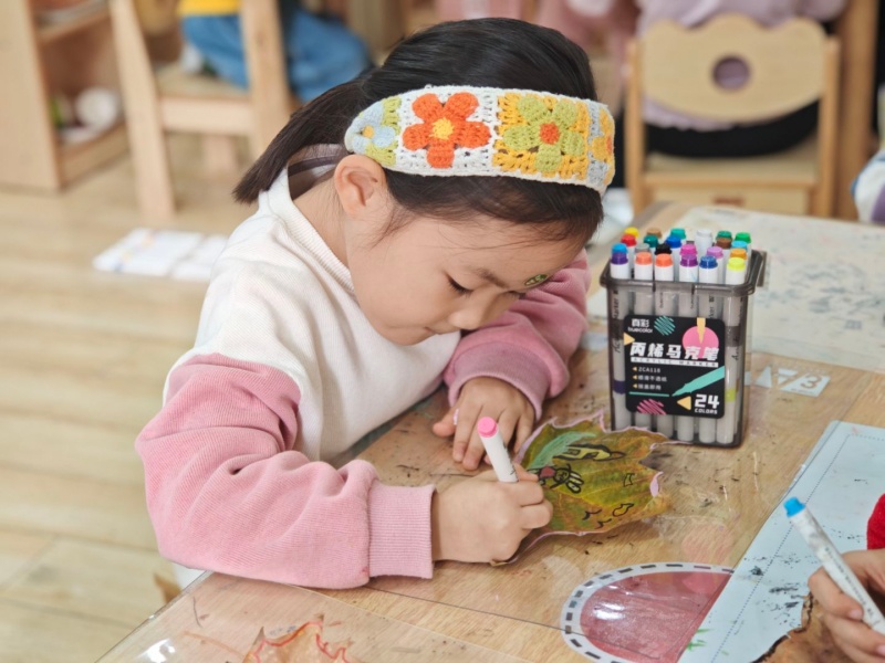 中班活动聚焦于立冬习俗的艺术化表达。一组孩子以“绘饺子”为载体,通过对形状、色彩与场景的创造性表现,内化“立冬吃饺子”的文化符号;另一组则借助落叶拼贴,实现自然材料与想象力的完美结合。孩子们在将落叶变为小鱼、蝴蝶的过程中,不仅锻炼了手眼协调能力,更体验到传统习俗与自然之美交融的乐趣。