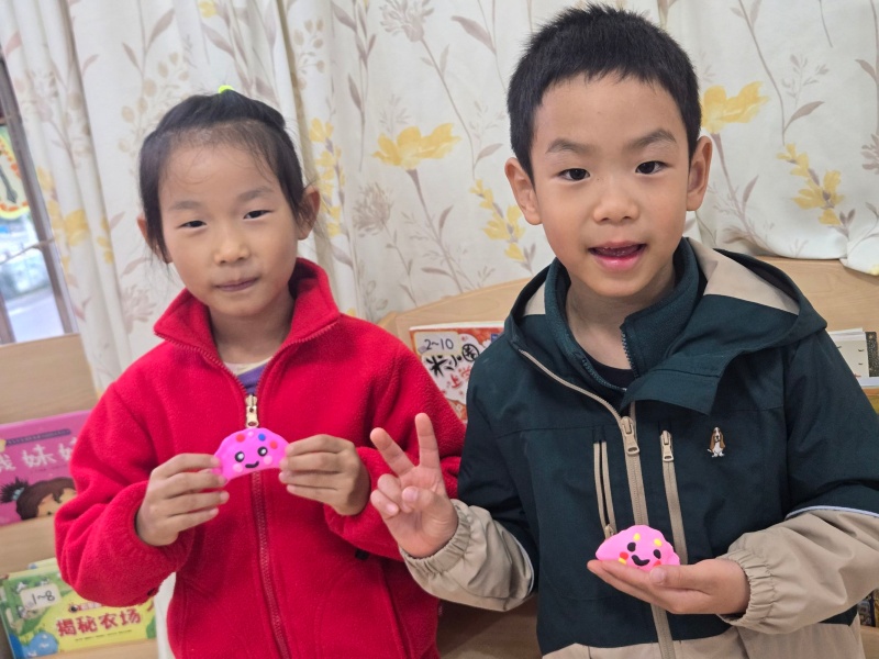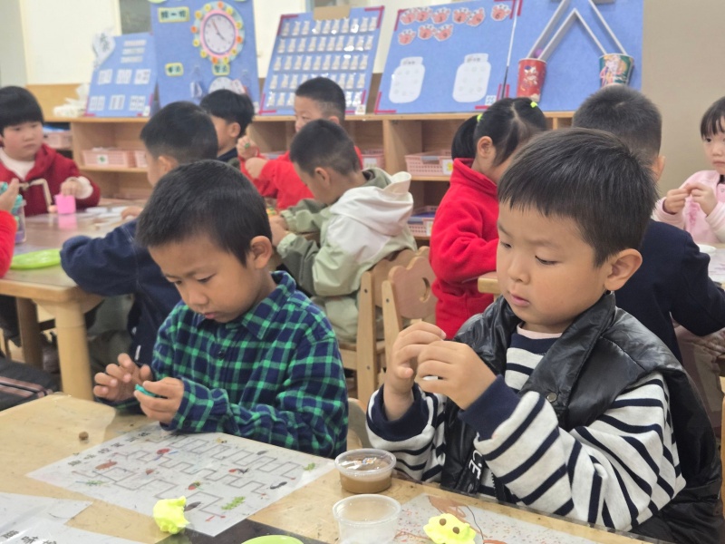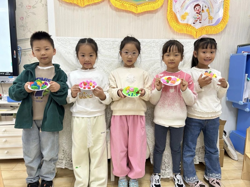 大班的彩泥包饺子比赛,将活动推向高潮。从模仿“擀皮”“放馅”到自主设计“彩虹饺子”“元宝饺子”,孩子们在捏塑与创造中,既发展了精细动作与空间思维能力,也体会到劳动与分享的喜悦。比赛过程中的专注尝试、成品展示时的语言表达以及评选环节中的成就体验,共同构建了一个立体的学习情境,使“立冬团圆”的文化内涵自然浸润童心。