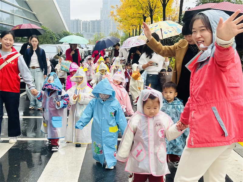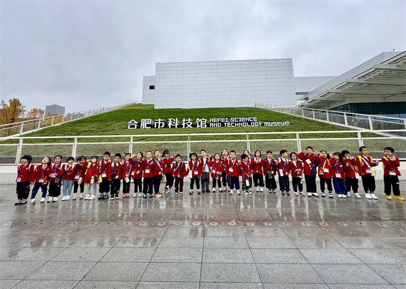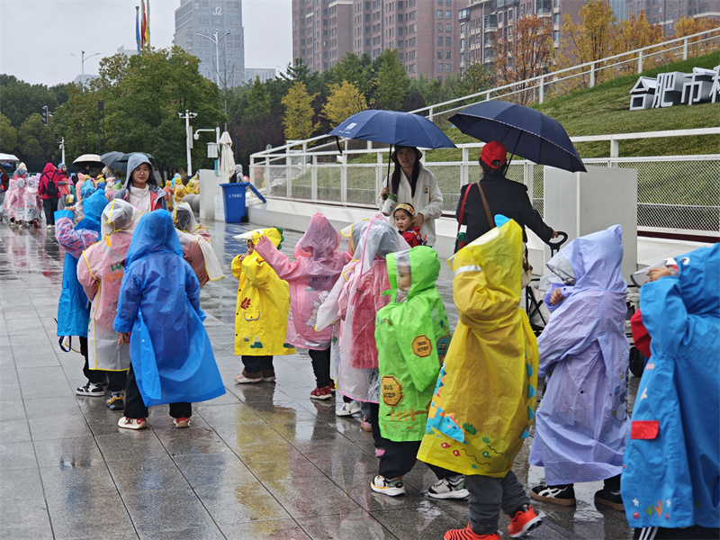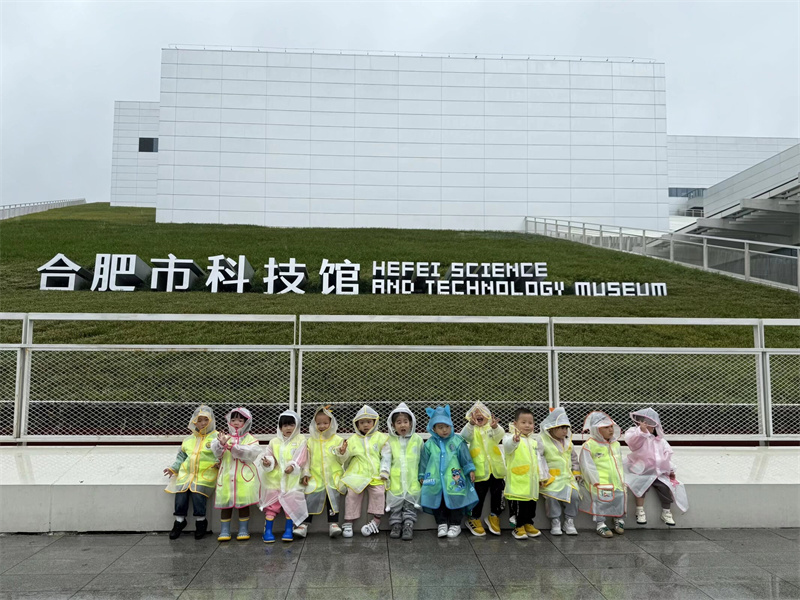 秋雨绵绵,润泽庐阳。2025年11月7日,合肥市大西门幼儿园教育集团森林城分园的孩子们,踏着细密的雨点,身着斑斓雨衣,走进合肥市科技馆蜀西湖馆区,开启了一场以“YUE动庐阳,小脚丫走进科学”为主题的特殊旅程。这场秋雨,不仅没有阻挡探索的脚步,反而为科学之旅增添了别样的诗意与温度。