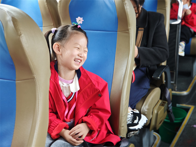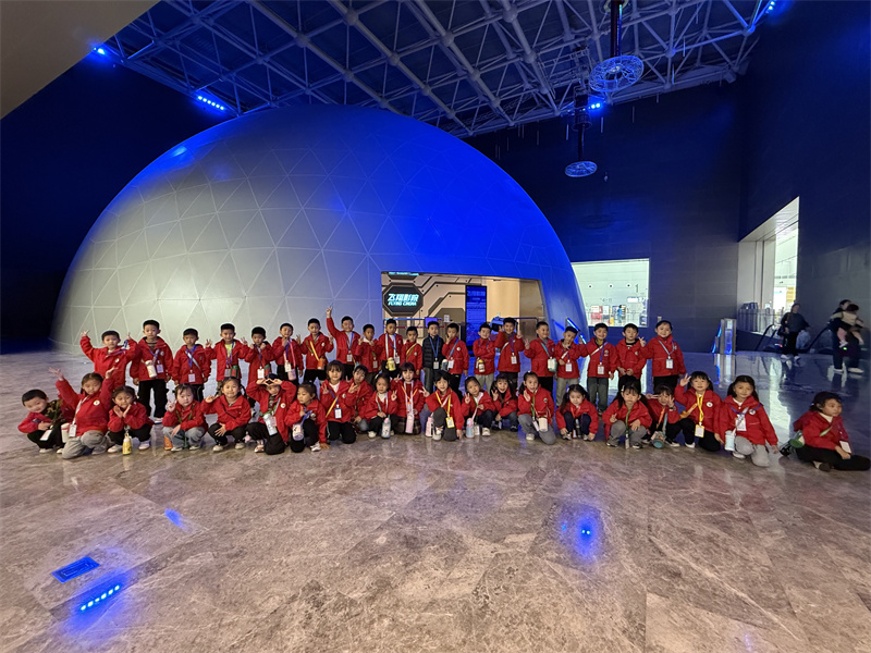 清晨的雨丝刚织成薄纱,小朋友们穿着色彩斑斓的雨衣陆续上车。雨水顺着小朋友们的帽檐滴落下来,孩子们观看到这一现象捂着腮帮子笑:“你的雨衣在‘下雨’!”也有小朋友打趣的说到:“我把雨水装进了书包里!”老师们扶着小朋友们一个个上车:“快点上车喽,科技馆的‘魔法屋’等着你们呢!”。车子启动了,车厢内,孩子们十分的激动,欢声笑语交织成动人的序曲,一双双明亮的眼睛里,写满了对科学世界的好奇与向往。