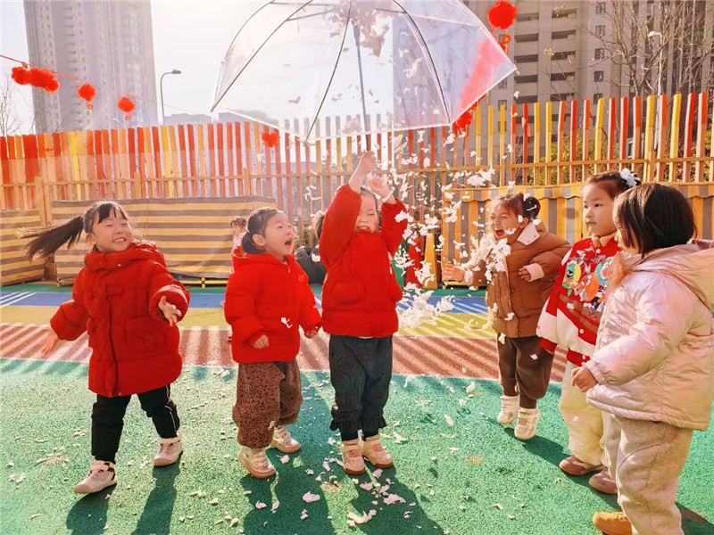 托班教室里,一场“漫天飞雪”的奇妙派对率先拉开帷幕。老师们为宝贝们准备了白色纸巾,孩子们稚嫩的小手捏起纸巾,撕出一片片形态各异的“小雪花”。当老师撑起透明雨伞,将孩子们的“作品”轻轻放入伞中,再轻轻抖动伞面,无数“雪花”簌簌飘落。宝贝们仰着小脸,兴奋的欢呼:“下雪啦!下雪啦!”一个个纷纷伸出小手追逐飞舞的“雪花”,教室里满是欢声笑语。