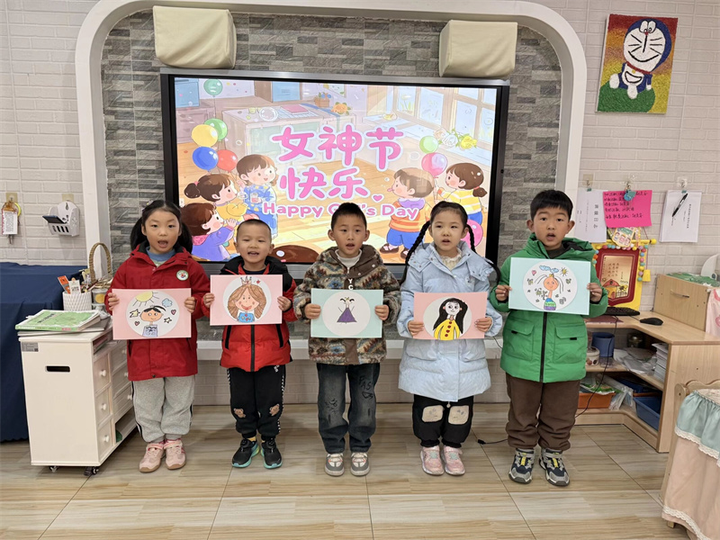 大班幼儿以创意表达为核心,用画笔与巧思致敬心中最美的女神。在“我心中的最美女神”主题绘画中,孩子们拿起五彩画笔,勾勒出女神们温柔的模样,描绘出日常陪伴的温馨场景,用画面定格心中最美的瞬间。在“女神专属奖状”创意设计活动中,孩子们自主绘制图案、祝福,为长辈送上专属仪式感,一笔一画、一字一句,都饱含着浓浓的敬意与爱意。