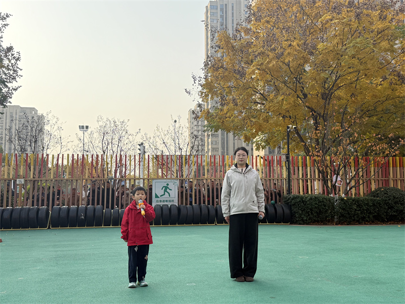 大一班幼儿黎梓木作为小主持人,向大家介绍了即将到来的12月2日“全国交通安全日”:“交通安全关系到每个人的生命安全和家庭幸福。”