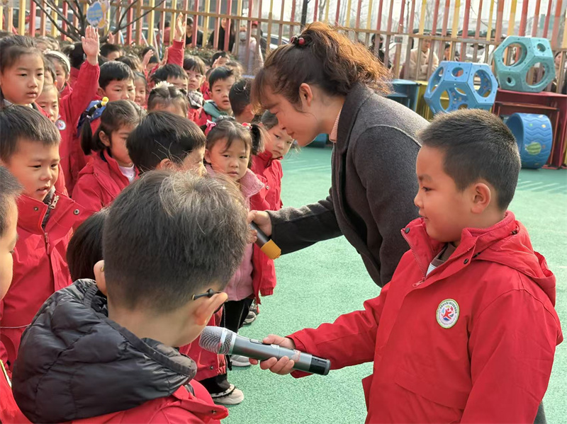 本次升旗仪式由托班张老师与大三班张宗翰小朋友共同主持。沐浴着清晨的阳光,主持人围绕植树节的由来,用生动易懂的语言向幼儿普及环保知识、爱护花草树木的意义等内容,引导大家积极思考、大胆回答为什么要种树、大树有哪些神奇“超能力”,让孩子们在互动中感受植物的重要性。随后,通过有趣的手指游戏《种树歌》,带领全体幼儿一起参与,在欢快的氛围里体验种树的快乐,让孩子们在轻松有趣的活动中,懂得爱护树木、保护环境、积极参与植树护绿活动。