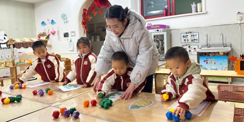 趣味游戏是数字启蒙的优质载体。桃花朵朵开、开火车、数字蹲等游戏,让孩子们在互动中感知数量、巩固顺序、熟记读音;区角益智游戏则通过实操,锻炼数字配对与排序能力,让孩子们玩转数字。