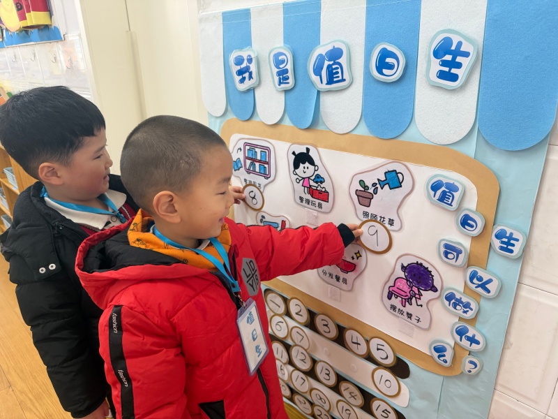 在集体活动“值日生的职责”开展后,孩子们更加明确值日生的工作内容。随后,“小值日生”们正式上岗:分发餐具、整理图书角、照料植物……在服务班级的过程中,幼儿逐渐理解责任的意义,体会帮助他人、维护集体的快乐,初步形成主人翁意识。