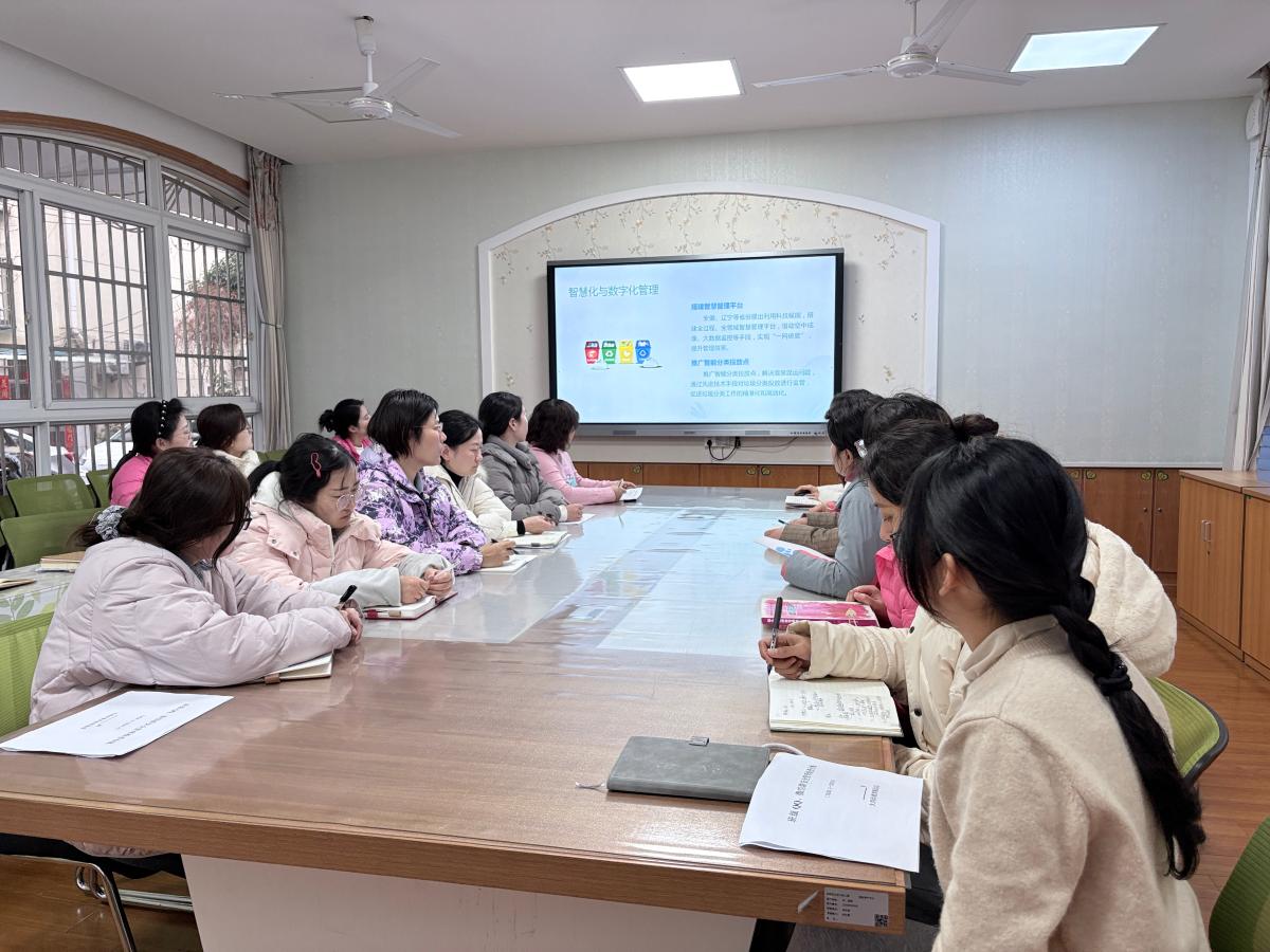 全体教职工齐聚会议室,在保教副主任赵悦的带领下,共同学习垃圾分类相关知识。通过文件解读、垃圾分类的意义、分类标准以及如何在日常教学中渗透环保教育。老师们认真聆听,积极互动,为后续开展幼儿主题教育做好了充分的知识储备。