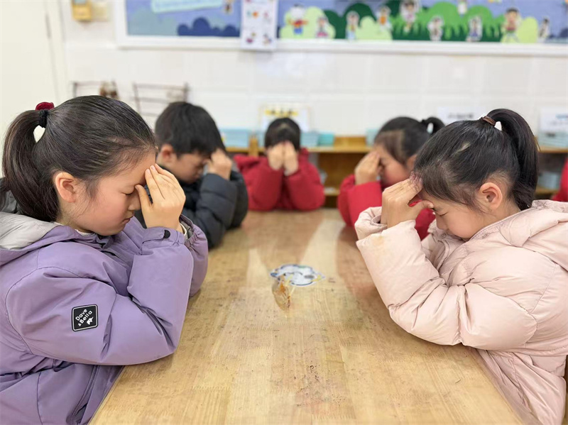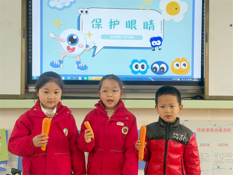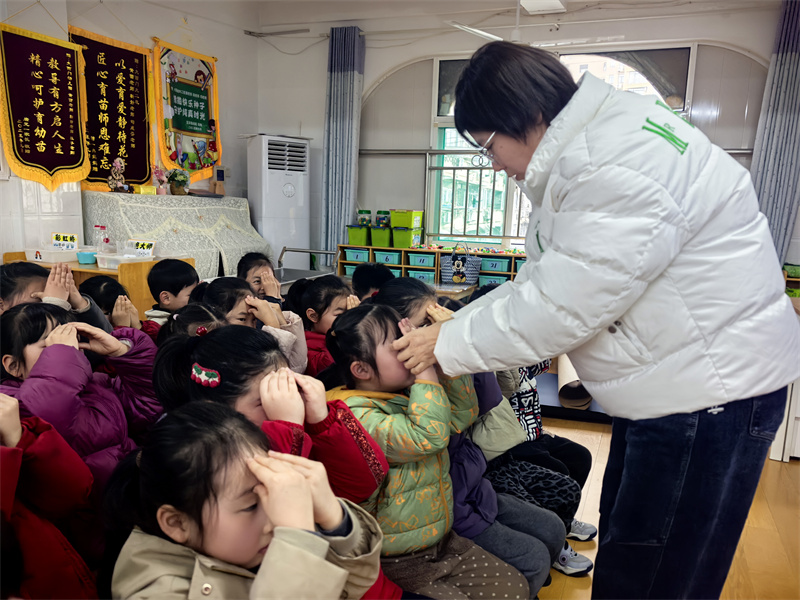大班组聚焦“爱眼护眼”,帮助幼儿养成科学用眼习惯。通过实物观察与趣味讲解,孩子们了解眼睛结构及保护方法,认识护眼食物。瞧,孩子们在认真学习眼保健操呢!他们还在日常生活中练习正确阅读、书写姿势,逐步养成“一尺、一拳、一寸”的好习惯。